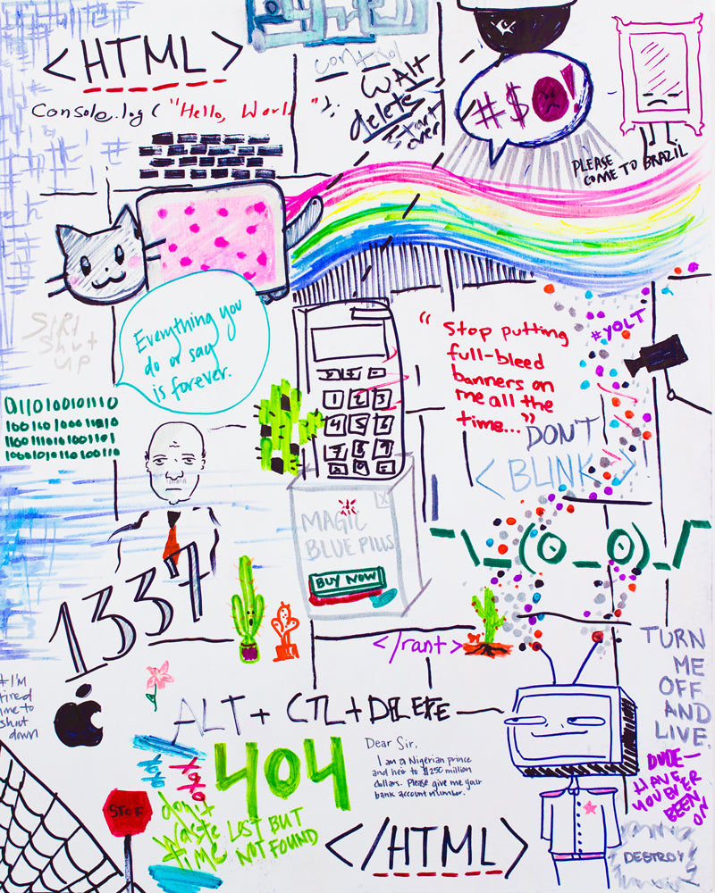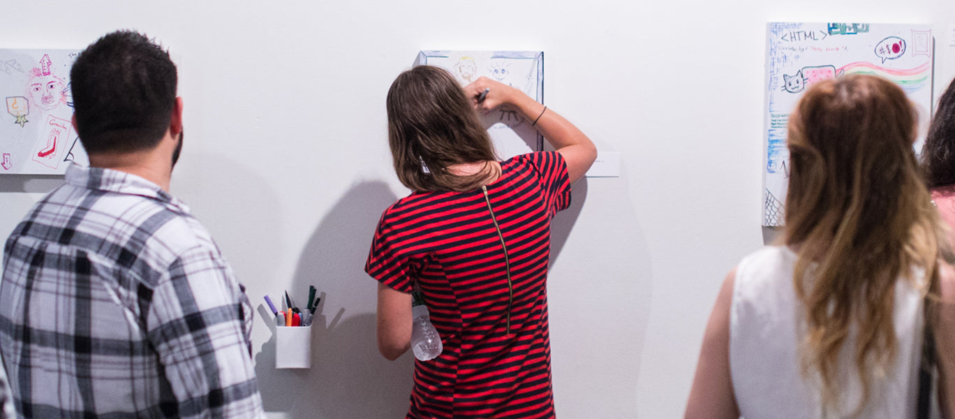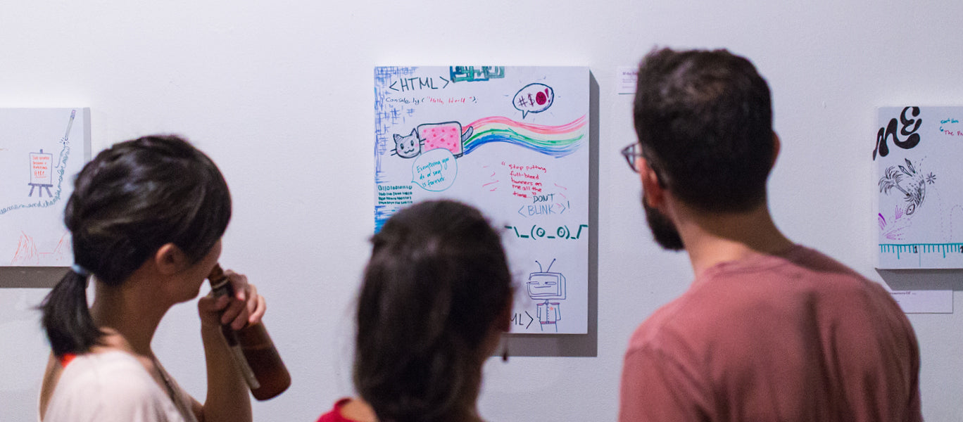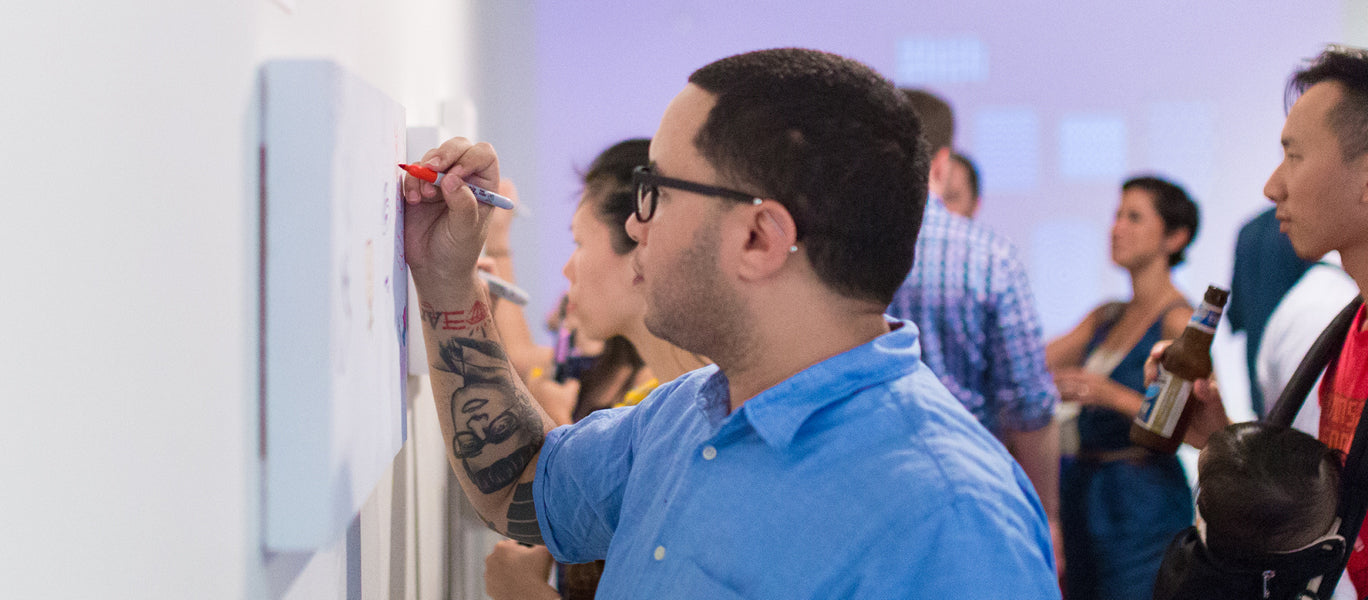 We set up a temporary gallery space in New York City with blank canvases. Titles accompanied each of the canvases and served as prompts for visitors to create visual works of art with friends and strangers.